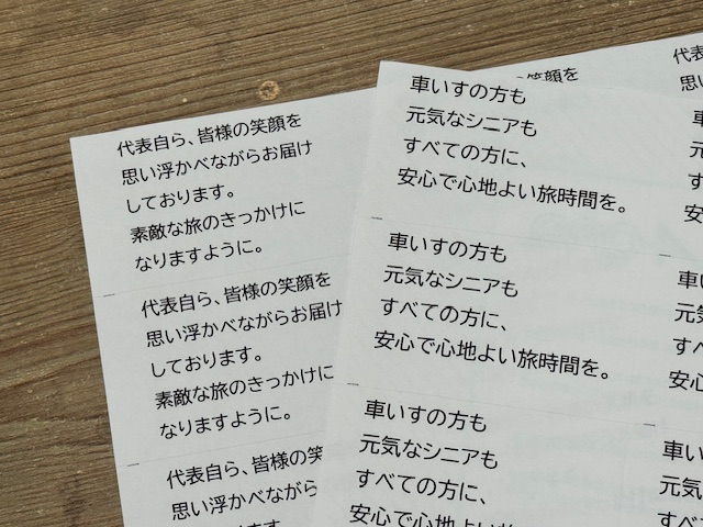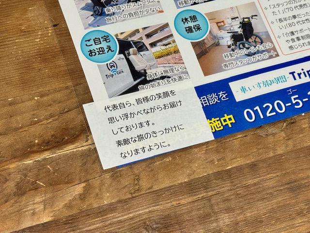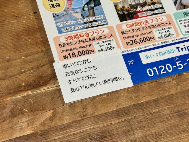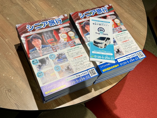 最初は介護タクシーのパンフも一緒にセットしようと思いましたが