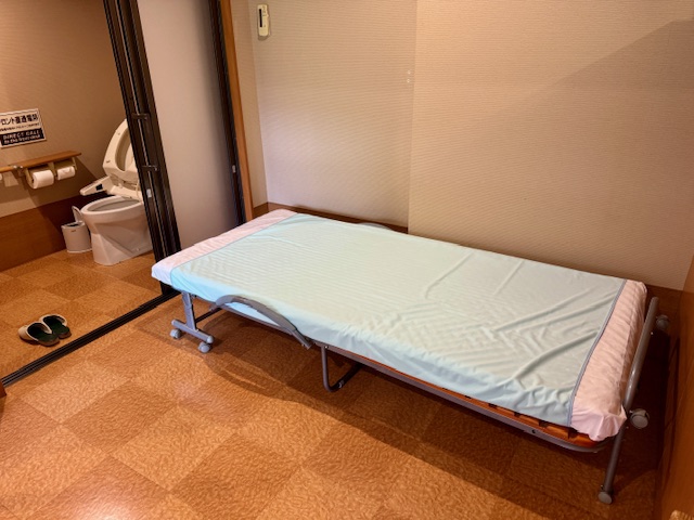 脱衣所にお着換えにも使えるベッドが用意されているのは嬉しいですね(^^♪