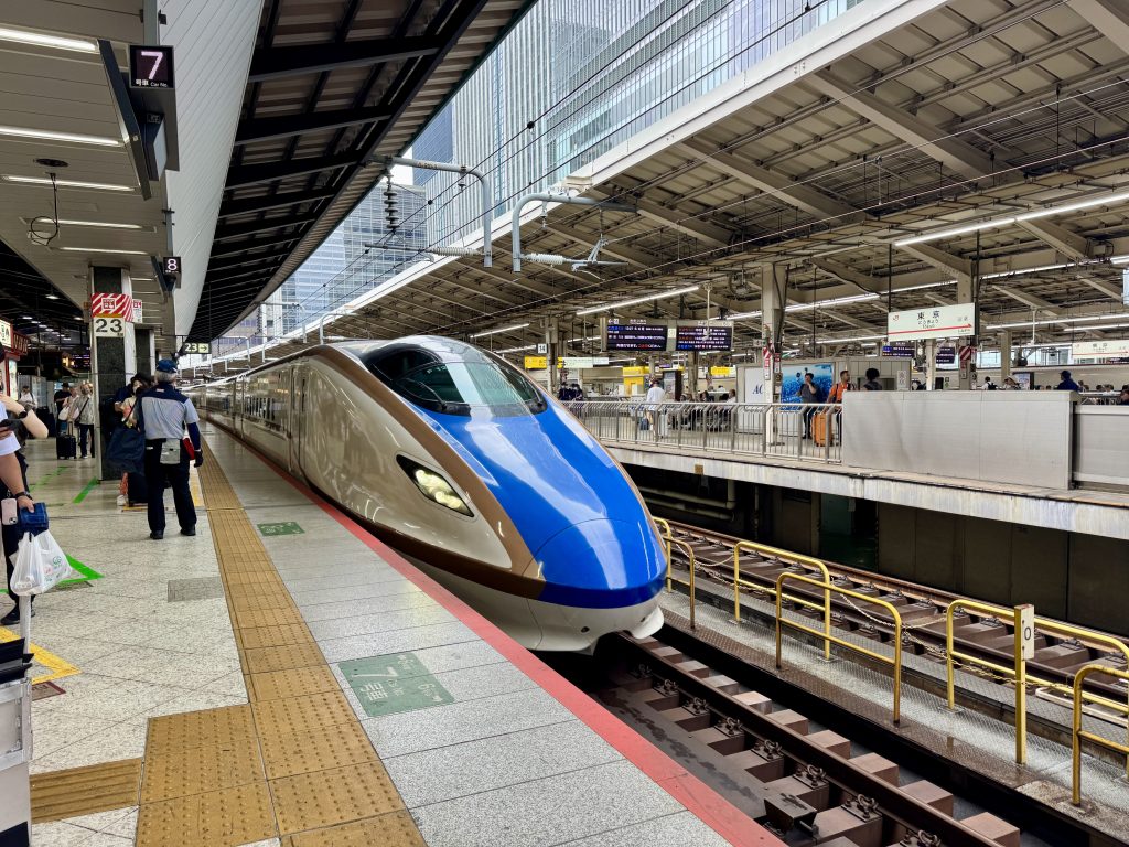 東京駅の新幹線が到着するホームでお出迎えさせていただきました