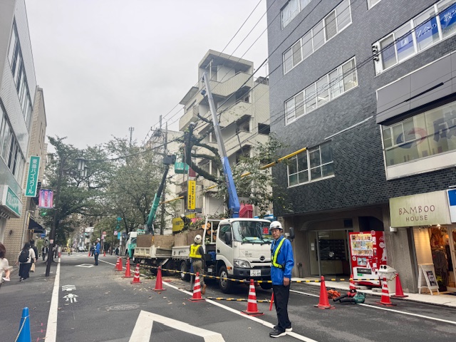 成城学園駅北口商店街の桜の木(17本)が伐採されました